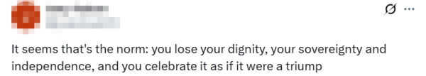 对于瑞士政府"喜大普奔"官宣与美国达成协议,也有网民难掩失望,"你失去了尊严、主权和独立,却还把它当作一场胜利来庆祝。这似乎成了常态。"