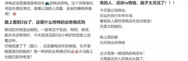 尽管个人经营存在违规及占道风险,但已有企业将充电宝变成电单车的"配件",据蓝鲸科技,记者从多地市场了解到,美团共享充电宝正与旗下电单车板块深度联动,形成"车+电"一体化的运营场景。