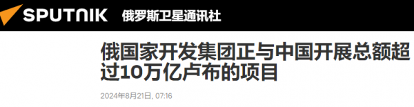 【俄国家开发集团正与中国开展总额超过10万亿卢布的项目】