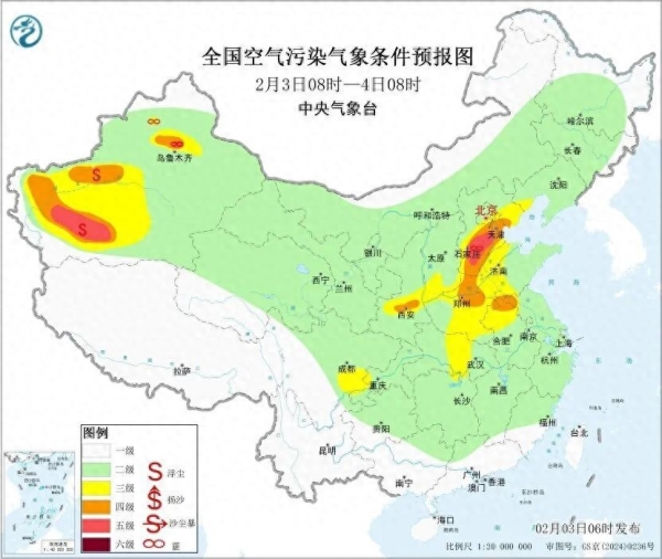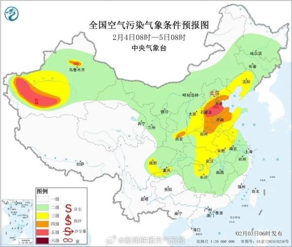 今明两天冷空气进入间歇期,大气扩散条件转差,污染物难以消散,华北中南部、黄淮中西部、汾渭平原、江汉等多地的部分区域将出现轻至中度霾。其中明天污染程度进一步加重,华北中南部局地还将遭遇重度霾天气,空气质量不佳,需注意做好防护。