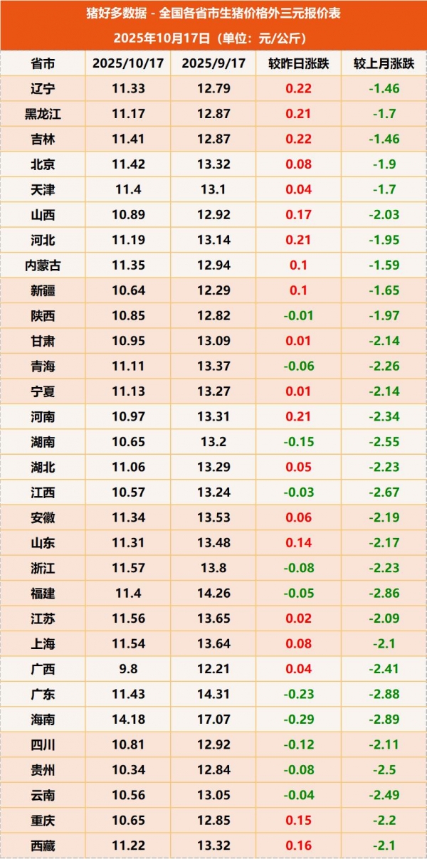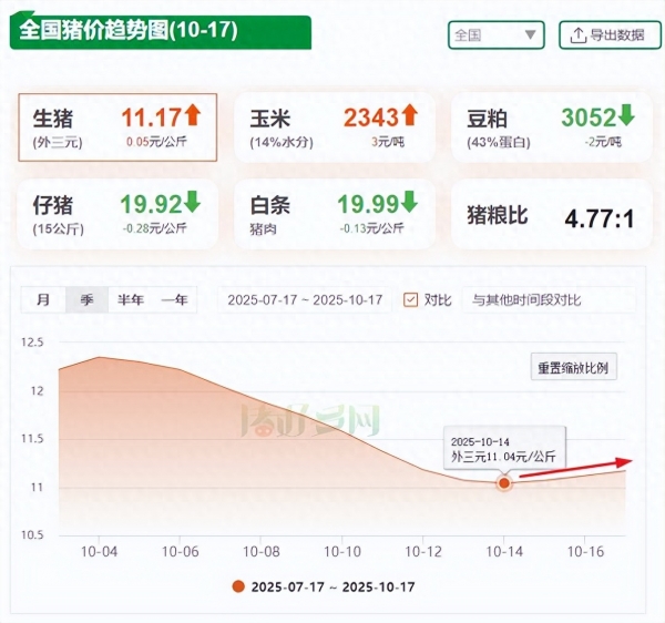 喜迎3连涨!生猪价格节节攀升,猪价重心正缓慢上移!据猪好多数据监测显示,10月17日全国外元生猪均价为11.17元/公斤,较昨日再上涨0.05元/公斤,叠加前两日涨幅,总计上涨0.13元/公斤,不过需要指出的是,局地猪价在今日出现涨势放缓的迹象,猪价这是又要涨不动了吗?