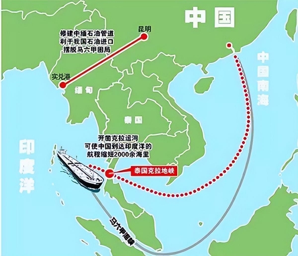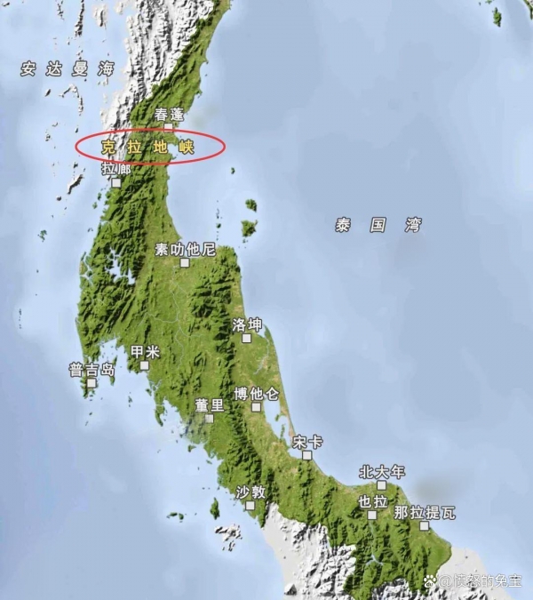 泰国最初是想在克拉地峡修一条运河,因为它最窄的地方只有56公里,如果有一条运河,来往两岸的船只能绕过马六甲海峡,航程缩短1200公里,时间缩短1-3天。对泰国来说,运河修好之后,两岸的军舰也能灵活部署,不像过去,泰国湾的船想进入孟加拉湾,还要绕过马六甲海峡。