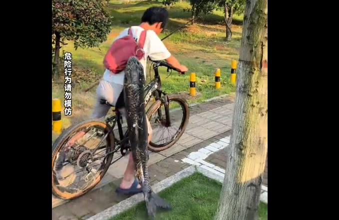 据了解,这条大鱼体型不小,小男孩骑着车时,鱼身一直拖在地上,他却丝毫不在意,一路骑得有模有样,引得路人纷纷侧目。不少株洲市民表示,在天元区附近都看到了这个孩子,估计是骑着车 "炫" 了一圈才回家。