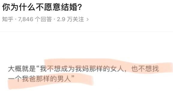 在某乎上,有个提问是"你为什么不愿意结婚?"。