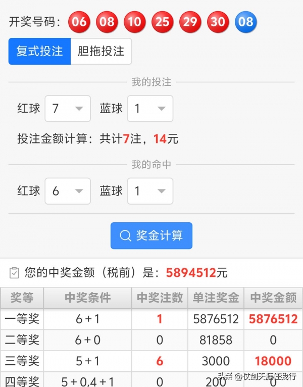 中奖号码:06-08-10-25-29-30+08,其中红蓝球再次出现同号08,且红球间隔仅一期便又断二区。