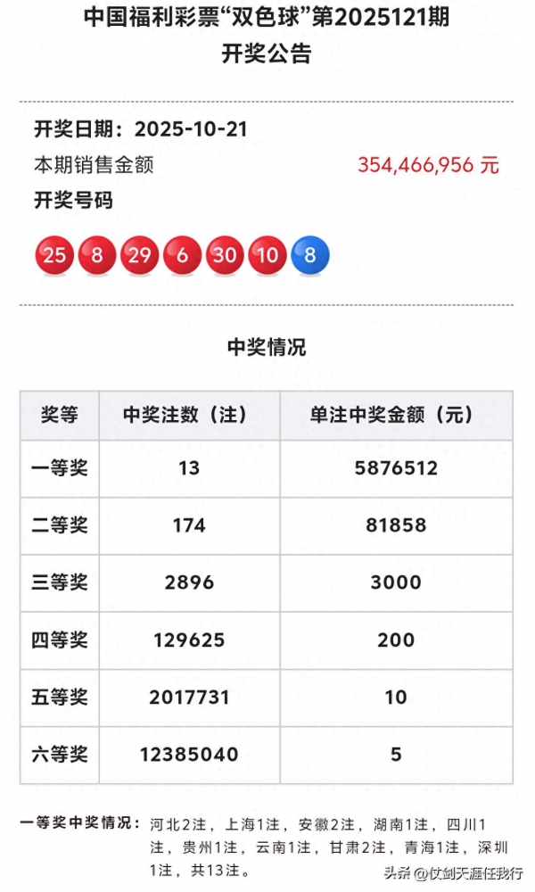双色球25121期昨晚开奖,中奖详情如下: