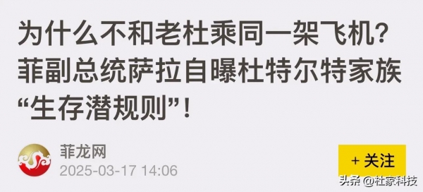 而且老杜家所有成员,包括夫妻二人也都不会同乘一趟飞机,说明菲律宾内部矛盾其实还是挺严重的。