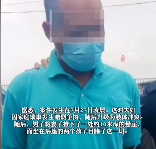 随后,男方将女方推至约10米深的悬崖之下,当时坐在后排座位的两名子女亲眼目睹了整个过程。
