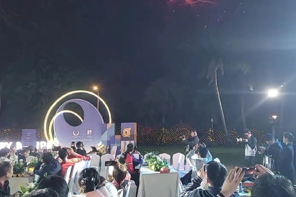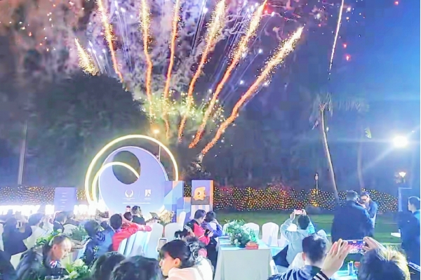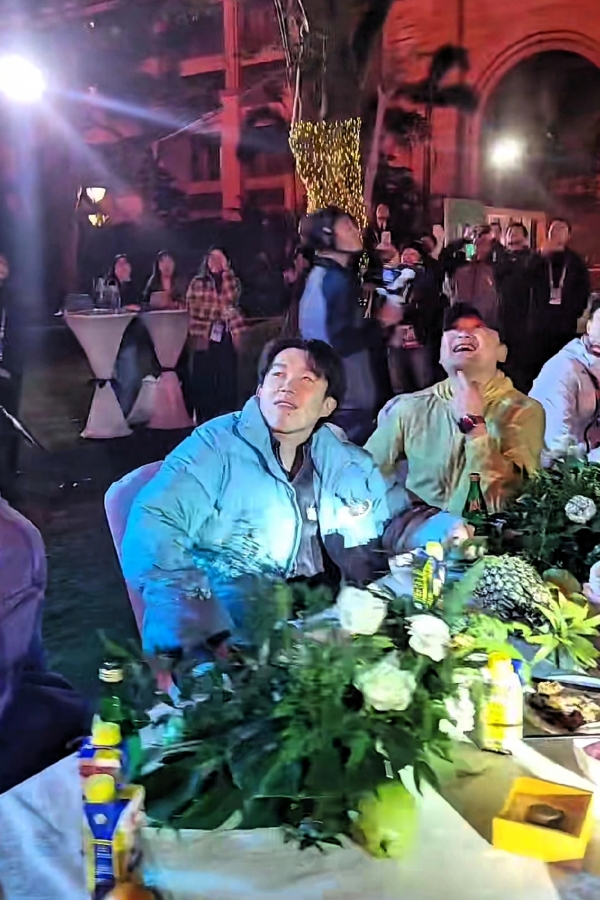 今晚的宴会,主要是看烟花。看桌面上的,大多数是水果。夜晚7点多天黑了,这次举办的晚宴离海边近,烟花在不远处绽放,五彩斑斓的,真的漂亮。王楚钦看入迷,眼睛布满笑意。林诗栋还有很多人拿起手机拍下来。