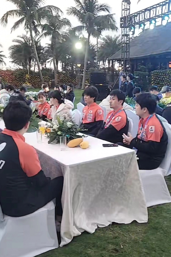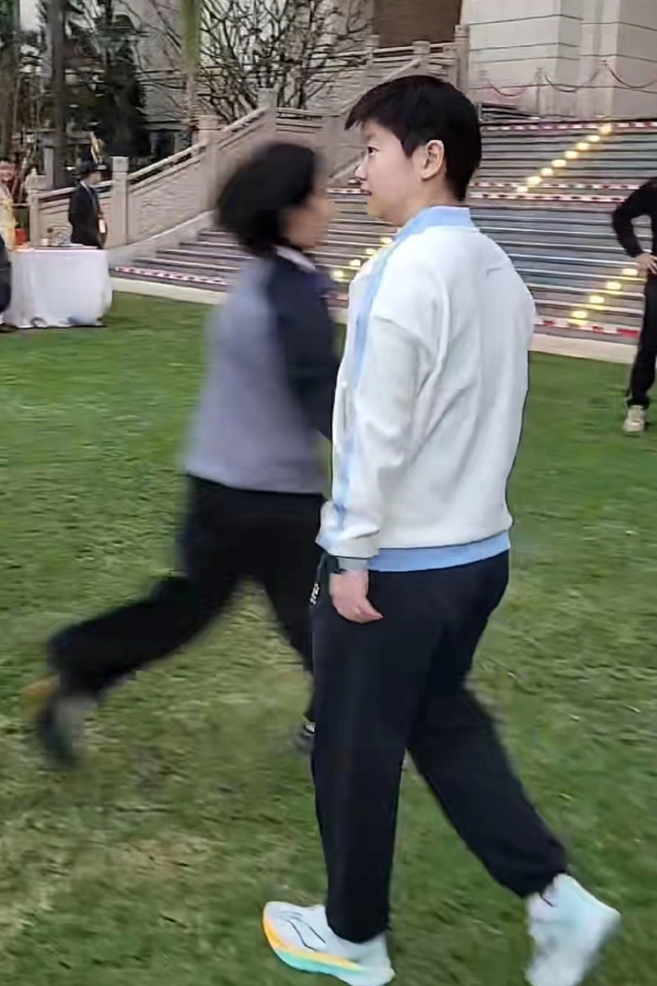 这次露天的草坪晚宴,真的不一样,现场布置得像婚礼。还没有开始的时候,孙颖莎在草坪上溜达,好几人找莎莎合照。