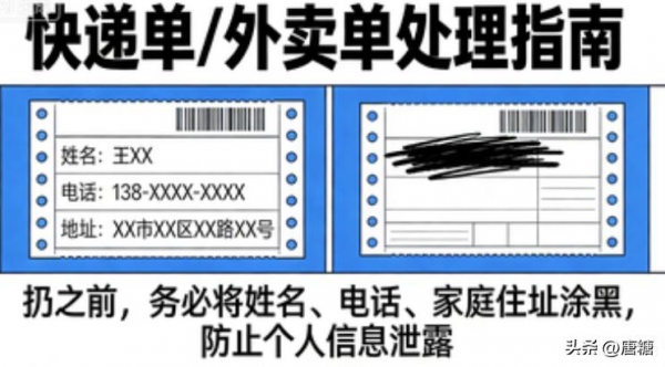 第一,快递单、外卖单,扔之前,一定要把姓名、电话、家庭住址,涂黑。