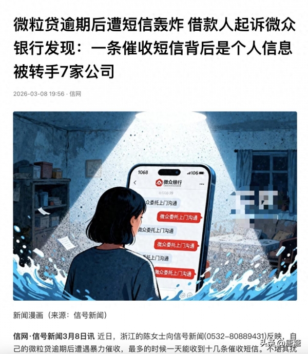 浙江的陈女士,在微粒贷逾期后,一天就被十几条催收短信疯狂轰炸!她忍无可忍直接把微众银行告上了法庭,