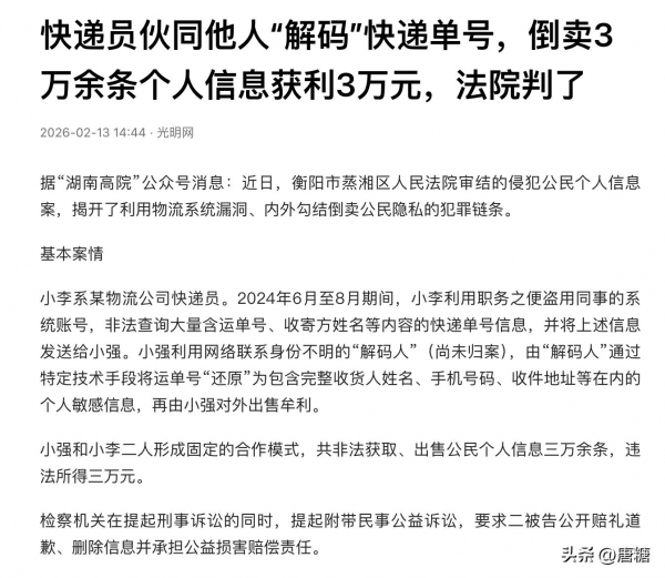 还有你天天收快递,之前某快递内部员工就直接出租系统账号,盗取了40万条快递面单信息。