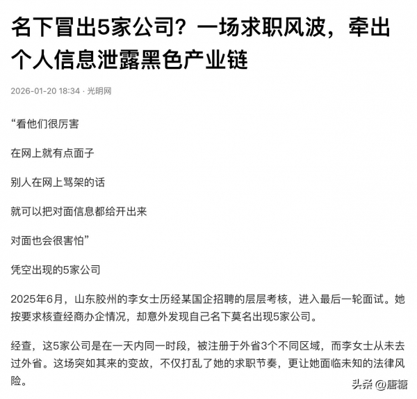 更可怕的是,山东某女子求职背调的时候,突然发现名下莫名多出5家空壳公司!