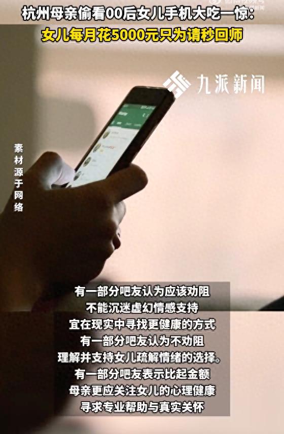 杭州陈阿姨家00年的女儿月薪9000元,吃住在家却毫无存款,出于好奇,陈阿姨偷看女儿手机发现,女儿每月花费5000元购买了一项名为"秒回师"的服务--由真人在指定时段内提供即时消息、电话和视频回应,双方素未谋面,交流内容也仅限于工作、友情与家庭烦恼。