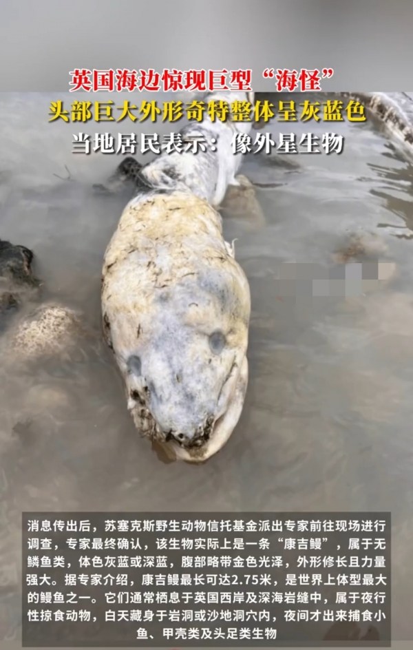 面对愈演愈烈的舆论,苏塞克斯野生动物信托基金会迅速派出专家团队赶赴现场。经过仔细勘验,生态学家汤姆·哈里森向公众宣布:"这并非什么外星生物,而是一条成年康吉鳗--英国海域原生的巨型鳗鱼。"他指着尸体解释道:"它们灰蓝色的皮肤没有鳞片,修长的身形能长到2.75米,是欧洲最大的鳗鱼物种。"