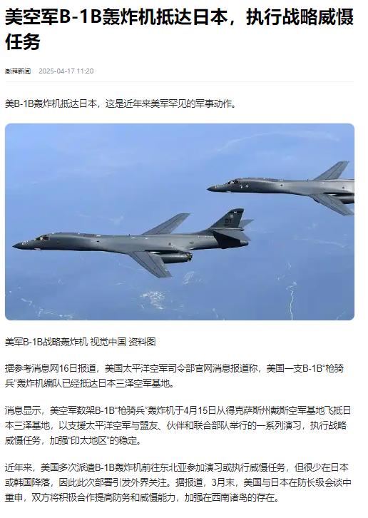 美国更是直接派出了B-1B战略轰炸机,这种能够携带核弹的空中巨兽,无疑是对中国及周边地区的严重军事威胁。
