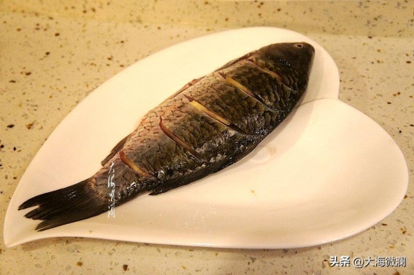 做法:鲤鱼清洗干净,两面切花刀,放上姜片腌制10分钟左右。