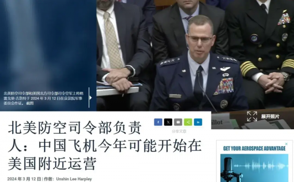 早在今年的3月12日,在美国众议院举行的军事委员会听证会上,北美防空司令部和美国北方司令部新任司令官--格雷戈里·M·吉洛特空军上将,当时就对"中国轰炸机随时可能抵近美国"一事发出了公开警告。