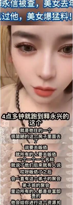7月29日,一段来自某短视频平台女网红的爆料视频在网络上迅速发酵,标题直白、内容劲爆,瞬间引爆舆论:"姐妹们每人1万住3天,凌晨4点抢着进释永信房间!"。