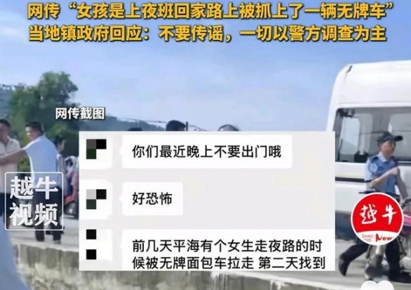 根据网传的一幅微信截图显示,声称。前几天平海有个女生走夜路的时候被无牌面包车拉走。