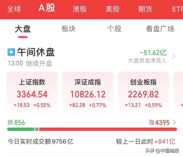 在市场上,今天上午,A股三大指数集体低开,临近午盘,三大股指突然拉升,全市场超130股涨停,超4000股飘红。今天还有一只新股上市,为金天钛业,上午盘中该股涨幅一度超过400%。
