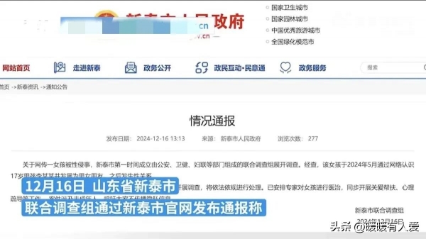 随着调查的深入,新泰市联合调查组发布了通报,说女孩是今4年5月在网上认识了一个17岁的男孩李某某,两人后来发展为男女朋友,还发生了关系,并且不止一次发生过关系,目前,李某某已经被采取了刑事强制措施,相关责任人也在调查中,会依法处理。
