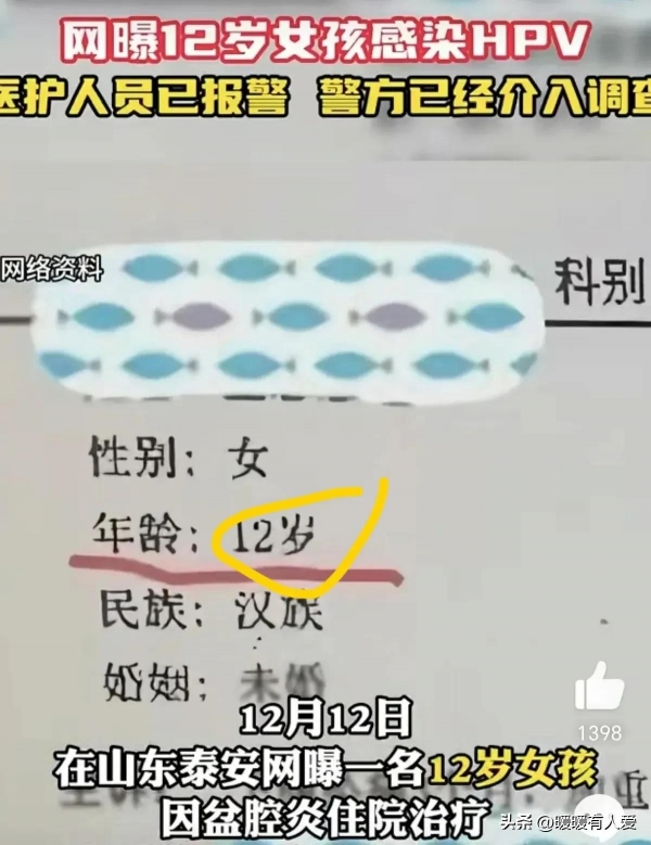 近日,网上传出新泰市一名12岁女孩因盆腔炎住院的消息,还曝出她感染了HPV,并有半年的性生活史。这事儿一出,大家都震惊了,心里都不是滋味。