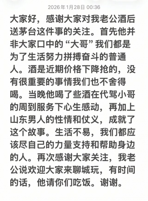 第三,给茅台是因为代驾小哥的周到服务,心生感动,还有山东男人的性情和正义。