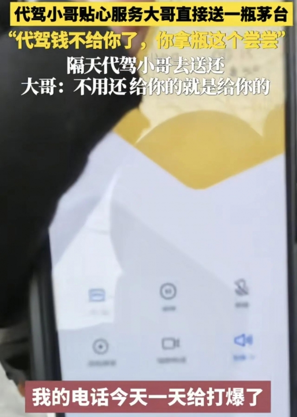 代驾费不给了,拿瓶茅台去尝尝吧。