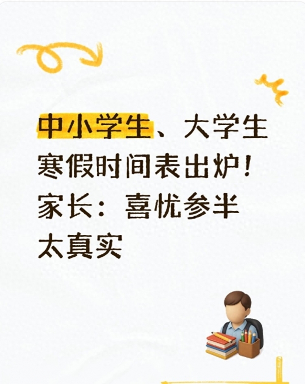 刚进入11月,期中考试的余热还没散,学生们就开始掰着指头数寒假了。这不,全国多地中小学和高校的2026年寒假时间表陆续出炉,不同地区、不同学段的放假时间差别还真不小。学生们看到通知直呼"终于等到这一天",但家长群里却炸开了锅,有人开心有人愁,那种喜忧参半的心情,真是说出了千万家长的心声。