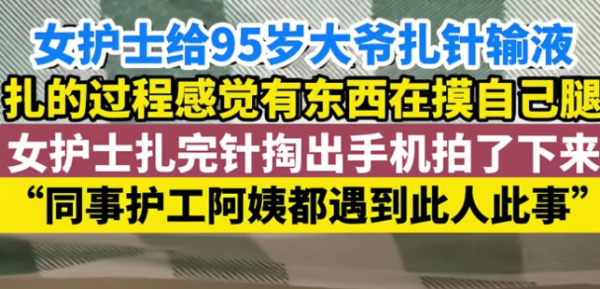 一90多的大爷在医院输液,护士给他扎针的时候,感觉自己的腿被摸了,没想到,竟然是这个大爷。让这个护士没想到的是,同事和护工阿姨都遇到过此人此事。