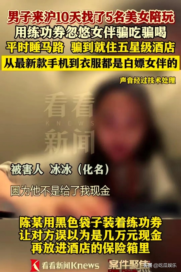 陈某还会以"中介"的身份,向这些姑娘收取10%的中介费,一套操作下来,既骗了吃骗了喝,还赚了中介费,简直把"白嫖"发挥到了极致。