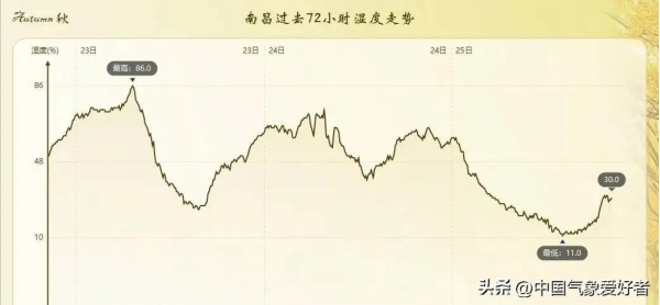 正因为此,这股冷空气还带来了下半年来最干燥的空气,而且深入南方。11月25日下午,南昌最低相对湿度降到了11%,打平了当地气象纪录,可以说南昌经历了最干燥的一天。就连广东深圳的湿度也降到了25%。