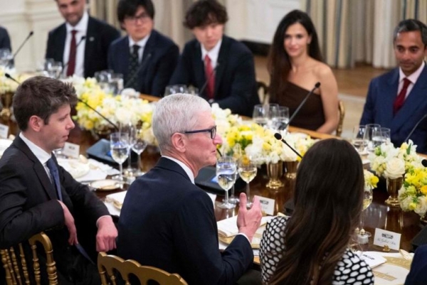 9月4日晚,特朗普在白宫"玫瑰园"举行了一场宴会,来的都是美国科技"大佬",有苹果、微软公司等等,特朗普很懂事,知道自己是要钱的,所以开场白先夸来宾是"最杰出的人才"。