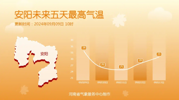 受冷空气影响,13到14日,全省自北向南转偏北风4到5级,阵风7级左右;大部最高气温较前期下降6度左右。