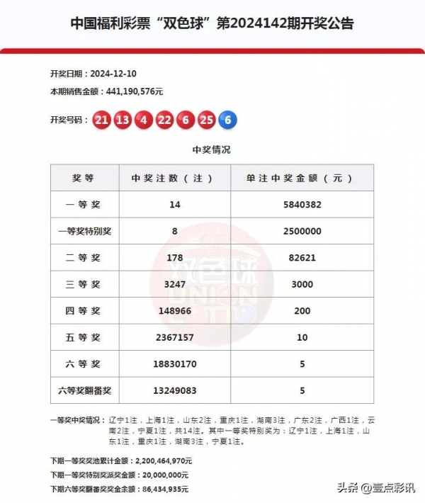 双色球2024142期开奖介绍