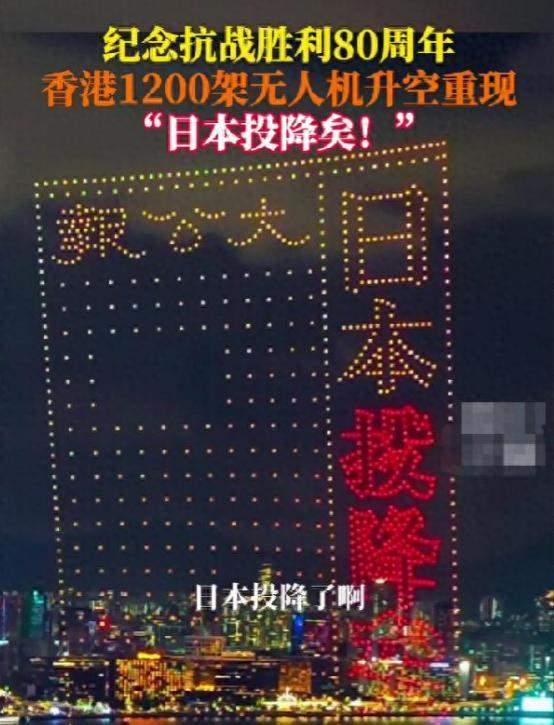 8月30日,香港湾仔维港的夜空,1200架无人机点亮夜空,夜空中重现日本投降矣!香港一夜封腾了,当时的场面实在是太震撼了,这让不少现场的市民直接看哭了。
