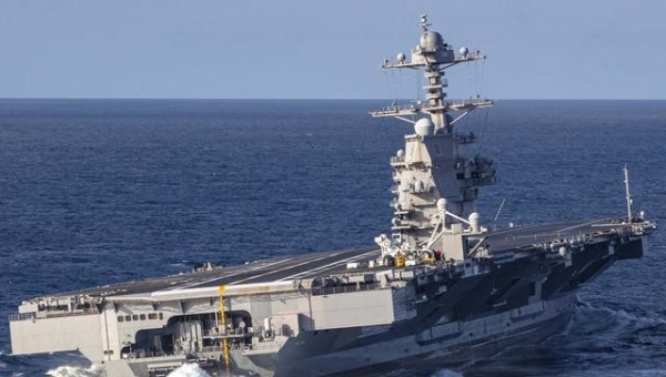 十月末,一艘庞然大物驶入这片海域。它是"福特"号,美国最新、最昂贵的航空母舰,一个能搭载数十架先进战机的移动海上城市。