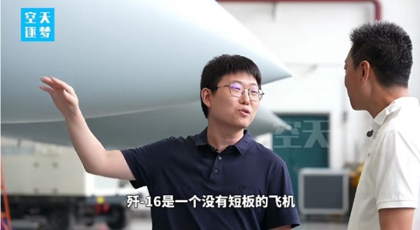 沈飞所艾志强工程师对着镜头说,我们自主研发的歼-16战斗机,在他的心里头是非常优秀的作战平台,部队的人跟他们常说,歼-16就是个没有短板的飞机。
