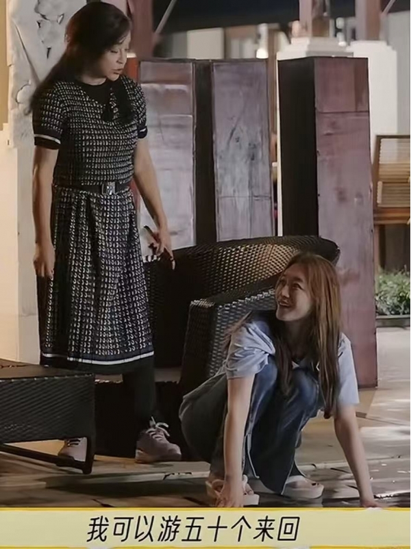 李小冉在泳池边问刘晓庆:"你能游几个来回",接下来庆奶的回答,惊掉了大家的下巴。