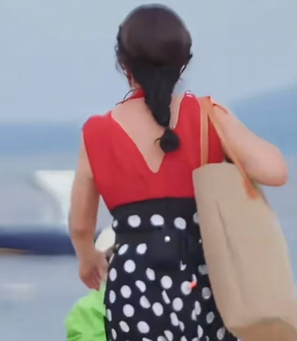 当然身穿泳衣走向其他嘉宾时,大家直接看呆了,向太更是多次歪头看刘晓庆的泳装秀。