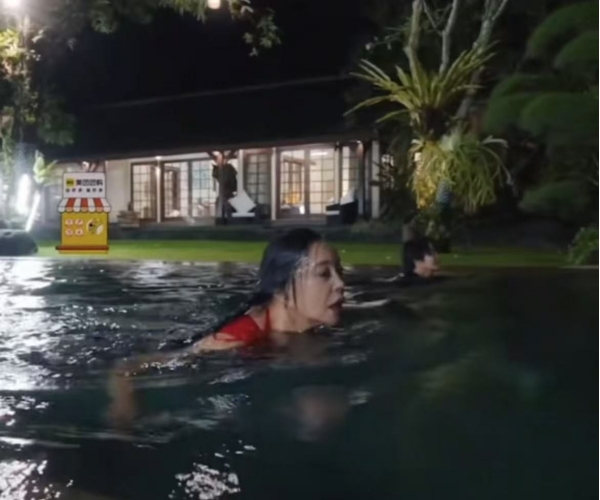 "看着,蔡明这是献给你的",说完这句话后,一个猛子庆奶就扎进了泳池。