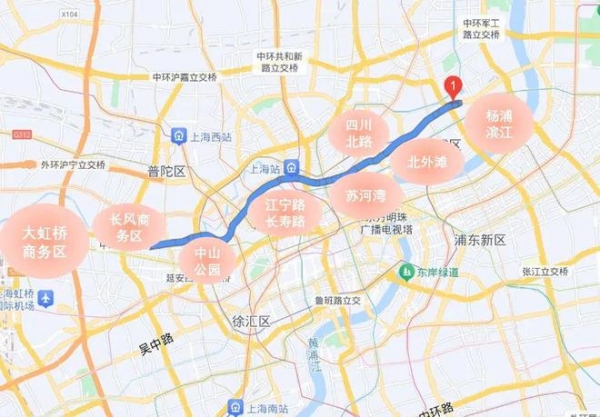 北横通道也被称为延安高架的2.0版本,承担着分流延安路高架车流的重任。其贯穿大虹桥、长凤商务区、中山公园、武宁路长寿路商业区、苏河湾地区、北外滩及东外滩。