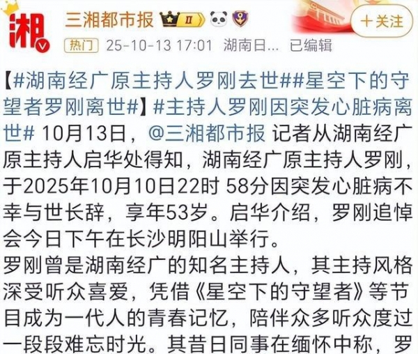 大家耳熟能详的深夜节目《星空下的守望者》,罗刚用极稳的声线陪伴了无数漂泊者。