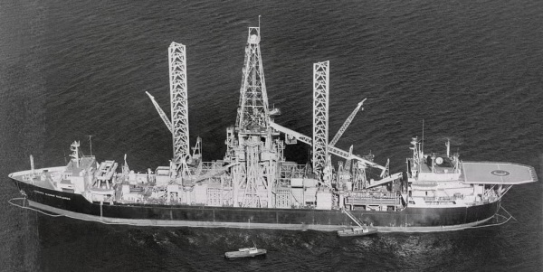 失事沉没的苏联海军629A型常规动力导弹潜艇K-129(上图);以及美国中央情报局为该打捞任务专门建造的"修斯·格洛玛探险者"(Hughes Glomar Explorer)号(下图)