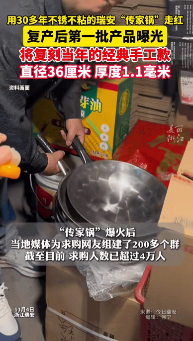 另据红星新闻报道:10月31日,工厂所在的瑞安市多个部门已组团上门帮扶"传家锅"厂家,助力企业复工复产。