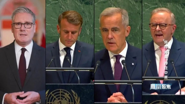 内塔尼亚胡演讲前,英国、法国、加拿大、澳大利亚等十余个西方国家在联合国大会期间宣布正式承认巴勒斯坦国,使联合国193个会员国中承认巴勒斯坦国的总数增至157个,占成员国的81%。只有特朗普在联合国大会上为内塔尼亚胡在加沙的军事行动展开了辩护。