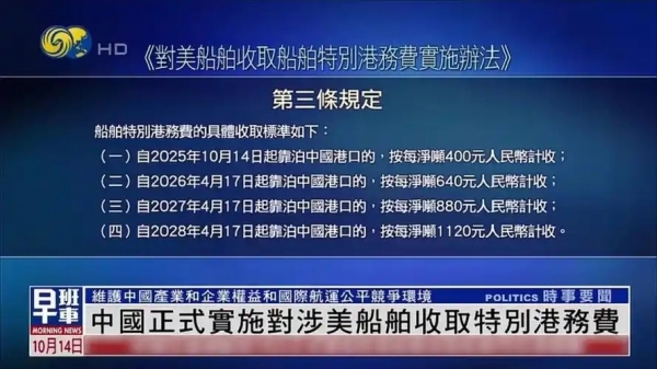 2025年10月14日,中国正式实施对美国船舶征收特别港务费的反制措施,标志着中美在经贸与战略层面的博弈迈入一个更为复杂而深刻的阶段。