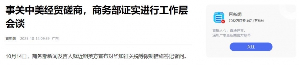 与此同时,美国财政部长贝森特公开表示"对华加征100%关税不一定要发生",以及法国、加拿大、瑞典等国高官将密集访华的举措,都切实表明了中美力量对比的演变、美国国内压力的加剧,以及全球格局的悄然重塑。